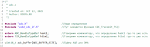 Теперь напишем обработку данных от АЦП и отправку их в USB порт. Для этого создадим два файла adc.h и adc.c. В них и будем кодить.