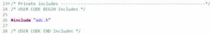 В файле adc.c опишем наши объявления, внешние определения