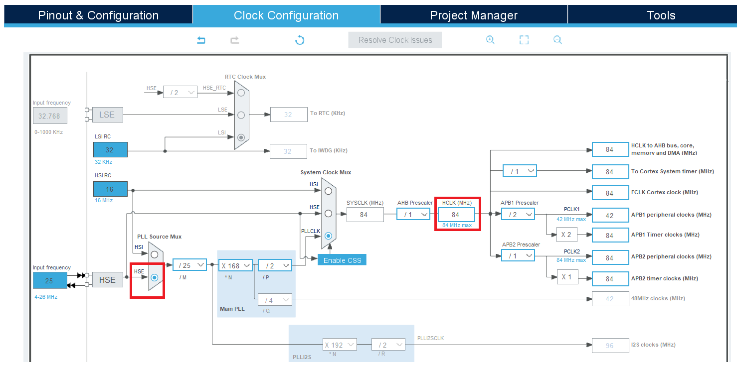 На вкладке Clock Configuration настраиваем следующим образом