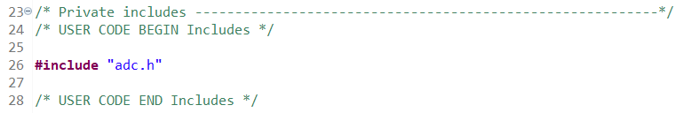 В файле adc.c опишем наши объявления, внешние определения