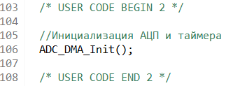 и в секции int main(void) добавляем вызов функции инициализации АЦП