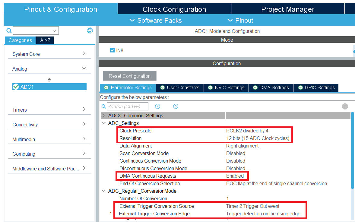 Далее настроим АЦП