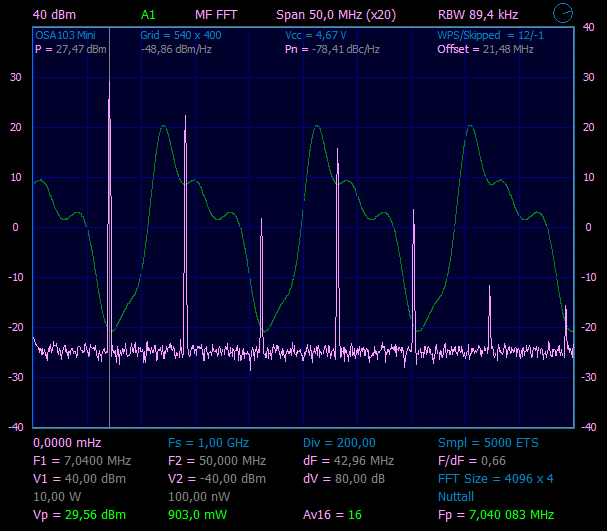 Так как на WSPR маячке чистый сигнал с SI5351 я получил на 40m, то и ФНЧ на выходе УМ надо переделать под данный диапазон, а то пока тут не порядок