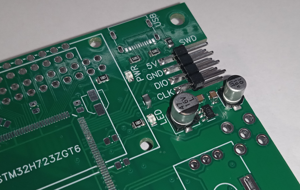Потом ответственный момент, пайка STM32H723ZGT6, у ее корпуса 144 вывода, паяльником вполне нормально не спеша запаивается