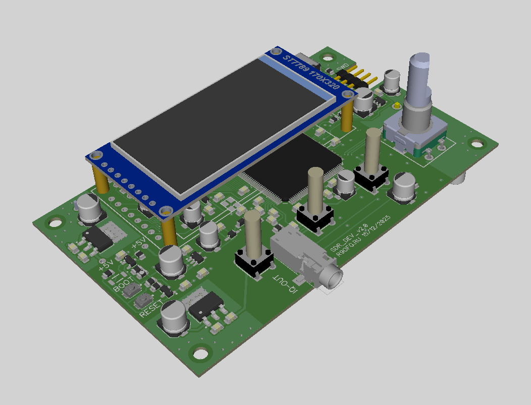 Для проверки сделал прошивку поморгать светодиодом на плате, заработало. Установил колодку под дисплей, кнопки управления и энкодер