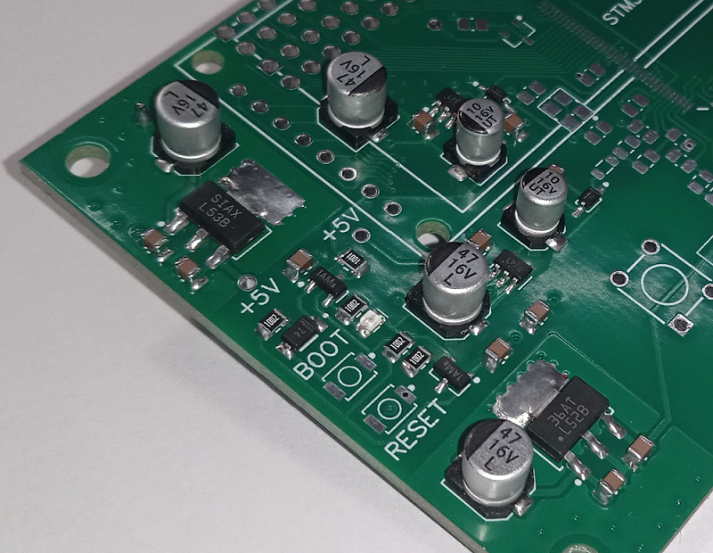 Проверил все напряжения, все в норме. Далее схема RESET и BOOT стмки