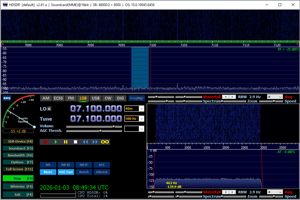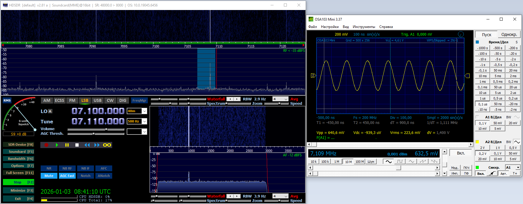 Тут видно зеркалку, это фаза убежала, ползунки корректировки в HDSDR помогают, но не полностью, надо в коде менять оцифровку и добавлять автоматическую коррекцию.