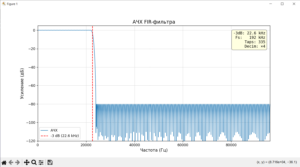 В нашем случае поможет цифровой фильтр нижних частот с конечной импульсной характеристикой — КИХ(FIR). Спроектировать/рассчитать его коэффициенты такого фильтра можно разными путями, есть и онлайн калькуляторы и отдельное программное обеспечение. Мы же воспользуемся онлайн конструктором TFilter.
