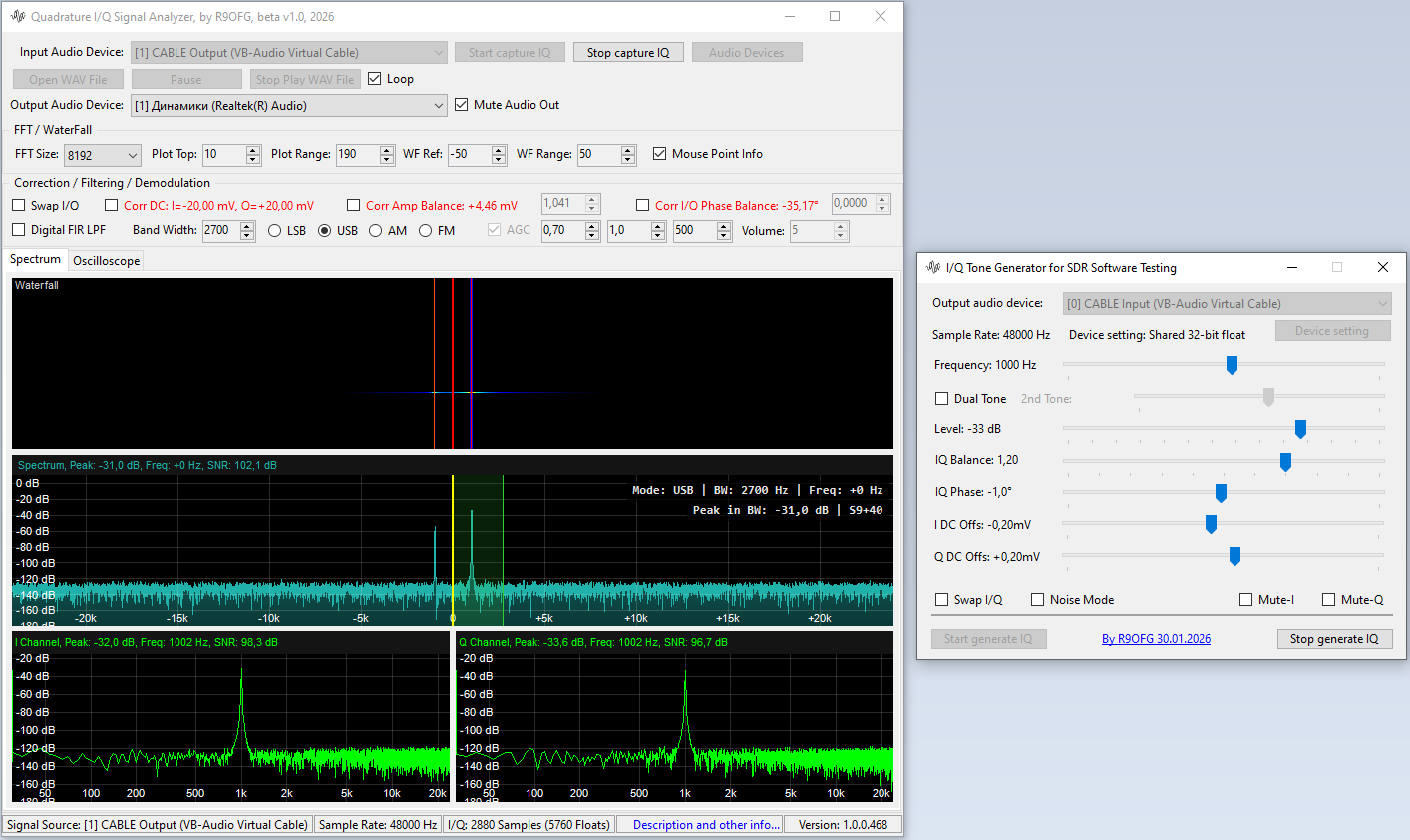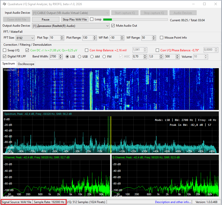 Продолжим осваивать цифровую обработку сигналов — ЦОС (DSP). Для дальнейших шагов написал приложение выполняющее анализ квадратурных сигналов I/Q, для понимания, что в реальности выходит с моего SDR стенда.
