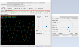 Интерфейс и управление старался сделать интуитивно понятными. Частота дискретизации выбранного источника сигнала берется автоматически от самого источника, на картинке вверху выделено красным.